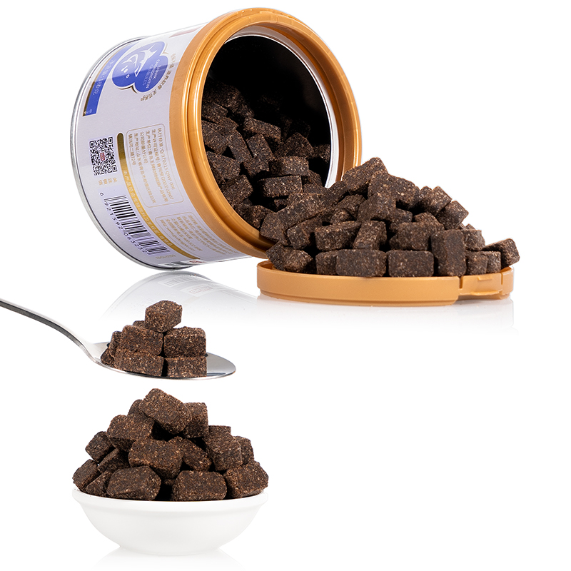 原料组成:鸡肉粉、鸡肝粉、葡萄糖胺盐酸盐、食品酵母粉、鱼油、蛋黄粉、胶原蛋白、绿唇贻贝。添加剂组成:硫酸软骨素(含鲨鱼来源)、二甲基砜、卵磷脂(3%)、L-赖氨酸盐酸盐、dl-α-生育酚乙酸酯、丙三醇。