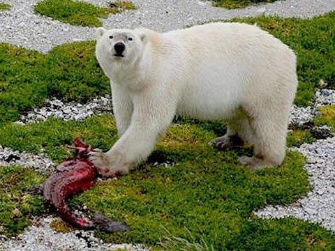 哥麦查诺说:“对近来北极熊食谱的分析表明,夏季在陆地上生活的北极熊会随机挑选那些可以吃的东西,进食各种各样的食物。”
