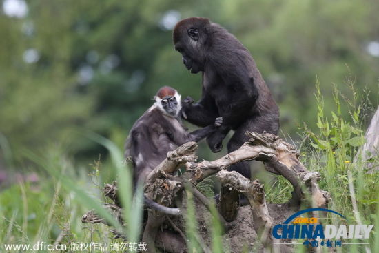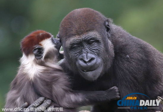 据外媒报道,当地时间6月9日,英国都柏林动物园一只白眉猴抱着一只3岁的猩猩说“悄悄话”,场面非常温馨。 这两只灵长类动物刚刚见面就打得火热,并将在动物园中的同一块土地上一起生活,照目前情况看来,它们相处得非常融洽。