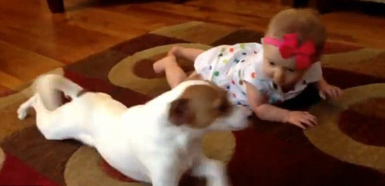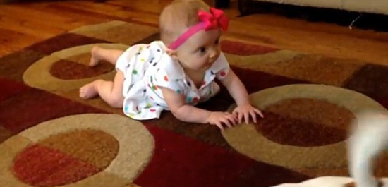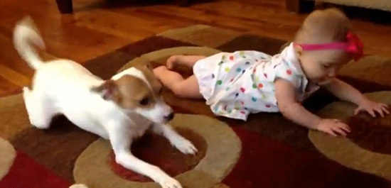 据英国《每日邮报》6月23日报道,为教会7个月大的宝宝如何爬行,美国宠物犬竟亲自示范。近日,一名来自美国佐治亚州亚特兰大市的妈妈将自家宠物狗教宝宝爬行的视频传至网络,引发网友关注,短期内点击量逾48万次。