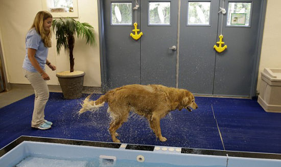 家中爱宠总是乐于“打扫”家人的剩饭,以至于它们的体重飙升。而随着宠物肥胖问题日趋严重,为旨在通过锻炼和节制饮食等方法帮助爱宠重获健康的。宠物塑身中心也如雨后春笋般涌现。英国《每日邮报》7月2日就刊登了一组照片,展示了一只名叫Ceili的金毛猎犬通过游泳、跑步、狗瑜伽等进行减肥的画面。