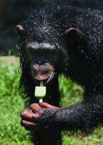 合肥动物园黑猩猩吃冰棒避暑