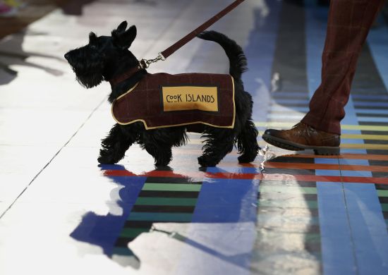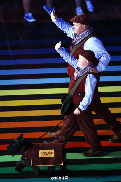 61岁的吉姆-克莱格就带着它的苏格兰梗犬“阿奇”参加了开幕式,阿奇已经跟了他三年。他说,经过几次彩排,他们都知道哪些狗见了会打架,因此开幕式之前都准备得非常充分,最后没有出现问题。