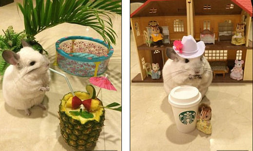 配合主人准备的各种精致道具,BuBu有时候成为超跑主人,有时候拿着熨斗做出熨衣服的动作,甚至有时候摇身一变去了国外泳池旁边,喝着饮料享受度假的时光。