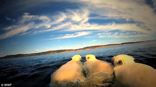 据外媒报道,世界野生动物基金会(WWF)日前发布了一个北极熊妈妈与幼崽海中同游的视频,妈妈紧跟在幼崽后面照看它们,尽显母爱。