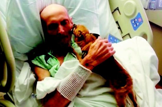 据英国《镜报》10月19日报道,美国肯塔基州科尔宾浸会健康医院73岁的重病患者詹姆斯·沃森6周前陷入昏迷。不料,他在见到其心念的爱犬时,竟奇迹苏醒,场面令人感动。据悉,詹姆斯年事已高,并身患重疾,一直无法说话和进食。他的病情在6周前迅速恶化,最后导致重度昏迷。然而,护士在他昏迷期间听到他一直嗫嚅着自己心爱小狗的名字:布巴。虽然医院禁止宠物入内,然而,为完成詹姆斯的心愿,医院还是破例从动物收容所将布巴接回与他团聚。他在病床上怀抱布巴,亲昵它,令在场人士无不为之感动。据当地电视台报道,令人感动的是,独眼吉娃娃布巴也是一只忠犬。自从詹姆斯入院,布巴就开始不吃不喝。据照顾詹姆斯的护士说:“我们都以为詹姆斯撑不下去了,可是,在他和布巴团聚以后,情况便开始好转。现在他和小狗都开始进食了,这真的是个奇迹!”为此,医院特许詹姆斯定期与布巴见面。据悉,目前,詹姆斯和宠物布巴都在奇迹般的恢复中。