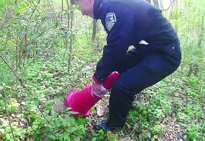 光华路派出所民警拿出事先准备好的警用防刺手套,并请物业人员找来网兜,慢慢地靠近两个小家伙。可能是受到惊讶的缘故,两个小家伙,并没有跑掉,只是抱得越来越紧。民警顺手将这对抱团“秀恩爱”的刺猬“夫妻”轻轻地抓起来,分开来后放进了网兜里。随后民警带着两只小刺猬,赶到中山陵附近,深入山林百米后,将这一公一母的刺猬“夫妻”一起放生。