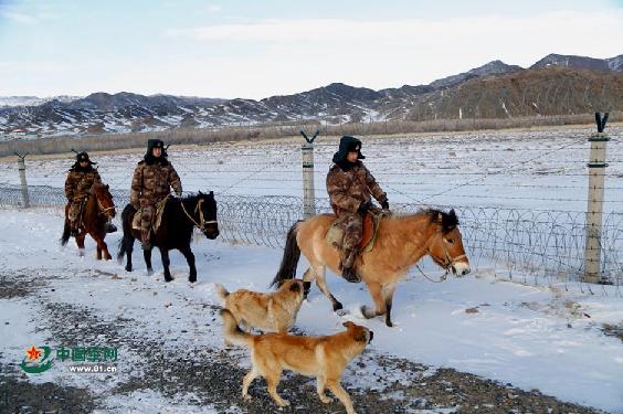 11月底的塔克什肯已是银装素裹,最低气温已达到零下35度。有的边境地区已被大雪覆盖,道路不通。为加强边境管控,防止发生涉外问题,11月27日,塔克什肯边防连组织巡逻分队乘马对中蒙边境实施巡逻。