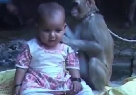 据台湾“联合新闻网”12日报道,一只流浪的母猴日前闯入了住在印度亚穆纳讷格尔市(Yamunagar)的一户人家,充当起家中小女婴的保姆,跟她建立了深厚的感情。
