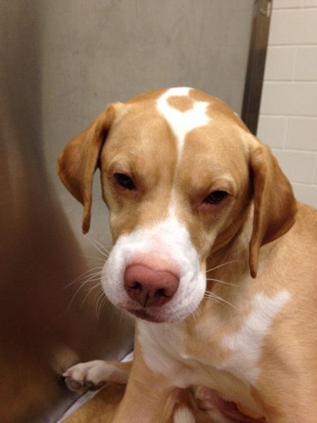 图为4岁的串种犬文斯(Vince),医生必须对其进行手术才能取出其胃部的皮革。