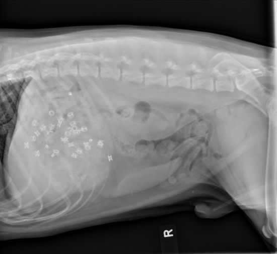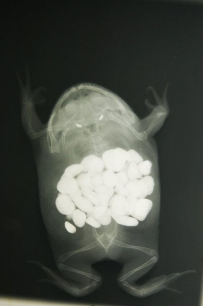 据悉,为了能够取出皮革,医生必须对文斯进行手术,而它胃部的x光片却很有可能出名:美国的一本兽医杂志每年都会刊登各种动物不可思议的x光片,2014年最有名的一张来自于一只吞掉了30枚石块的青蛙。