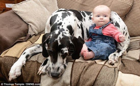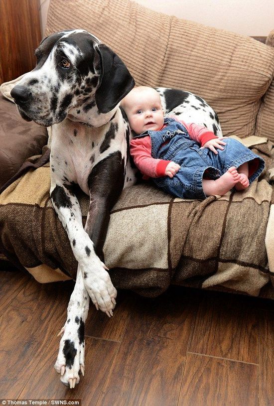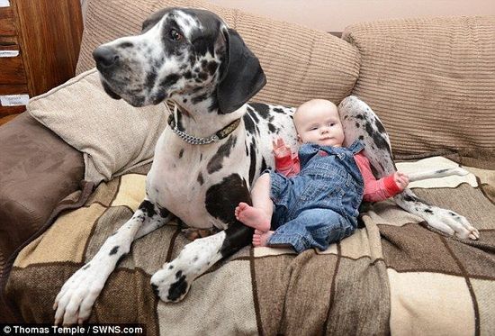 据英国《每日邮报》2月2日报道,英国大丹犬哈莉(Harley)与主人7个月大的女婴伊丝拉(Isla)情同姐妹、亲密无间。狗狗还主动担负起保姆职责,无微不至,堪称“最尽责保姆”。