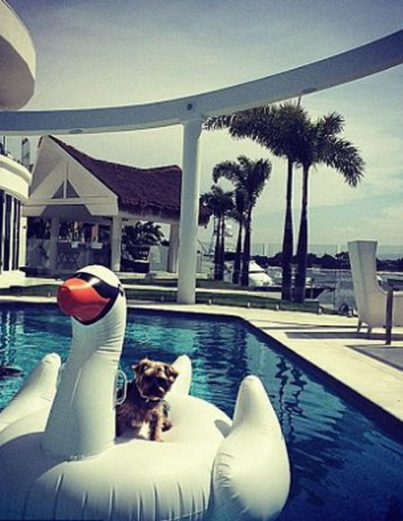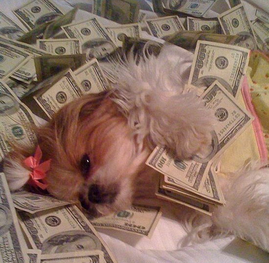在Instagram上疯传的富家狗生活照中,可见到狗狗在干净清澈的私人泳池旁悠闲地晒太阳浴,在堆满美钞的床上打滚,甚至同主人一起乘私人飞机遨游天际。