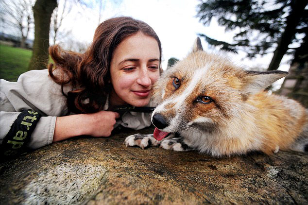 一只叫Todd的狐狸被宠物收容所救助后,就以为自己是只狗了,11个月的它会摇尾巴表示自己高兴,还会去笼子里睡觉,跟狗狗们一起去公园散步,根本不拿自己当狐狸。 Todd四个月大的时候被宠物训练师Emma救助,然后就开始有了一系列狗狗的行为,摇尾巴、玩玩具,甚至“遛狗”。 Todd四个月大的时候被宠物训练师Emma救助,然后就开始有了一系列狗狗的行为,摇尾巴、玩玩具,甚至“遛狗”。