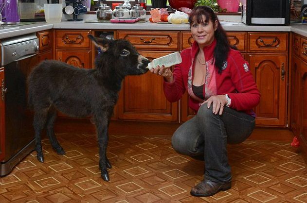 据英国《每日邮报》10月23日报道,英国49岁的妇女珍妮•纳尔逊(Jane Nelson)照顾着一只被抛弃的小驴“希望”,这只幼驴现已把珍妮当作自己的亲生母亲。“希望”只有拉布拉多犬那么大,但是在出生时被母驴抛弃,还遭到母驴的虐待。所幸的是,珍妮女士把它救了下来,并担负着照顾它的责任。
