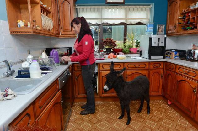 4只羊驼,8匹设得兰矮种马,2头猪,现在又有了1只驴。她说:“就像又有了孩子一样,‘希望’天天跟着我,它总是把耳朵往后缩,然后径直跑向我。‘希望’还喜欢在院子里到处玩。如果有人的话,它还会跟着他们走。