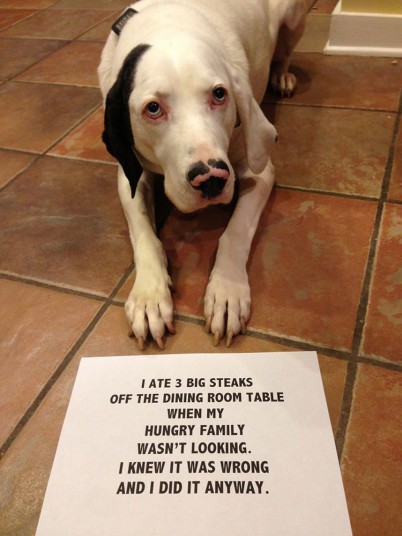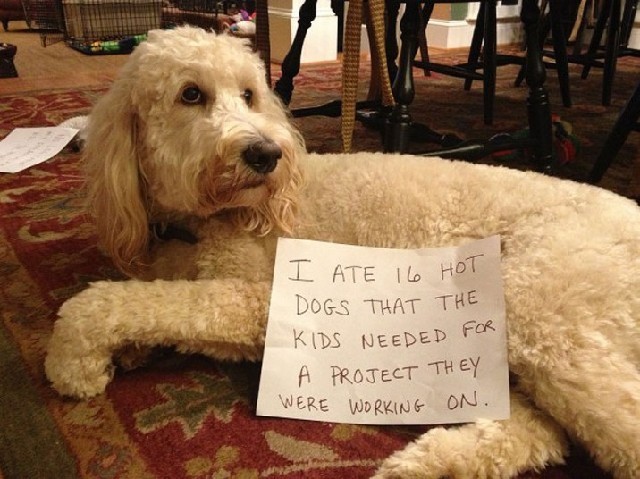 狗狗一向是人类的忠诚伴侣,然而有时候它们又会淘气到让主人们无语。当犯错误被当场抓到时,狗狗们也会表现得很内疚。一些狗狗主人别出心裁,将这些超萌瞬间拍下来,并附上狗狗们的“忏悔”,发到网上。狗狗们一个个无辜的表情让人啼笑皆非。