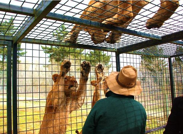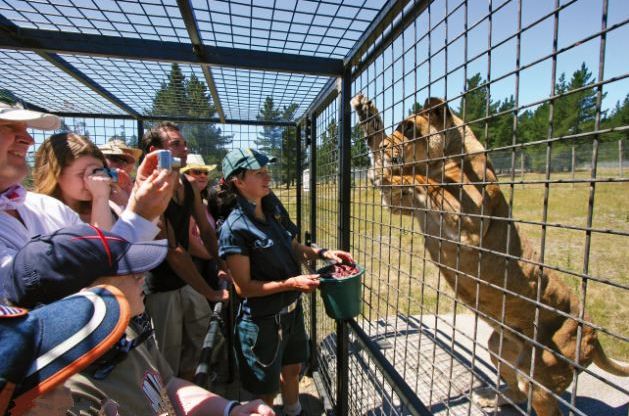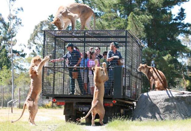 据报道,这些游客与饲养员一起,在狮子的午餐时间,站在卡车上的笼子里,来到狮子围场,近距离与狮子接触,在饲养员喂食的时候观察狮子的习性。狮子趴在笼子外面,垂涎地盯着笼子里的“猎物”,彷佛它们是来动物园看人的,而不是被看的。