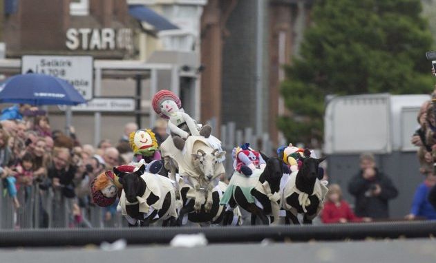 在这场一年一度的比赛中,当地牧羊人会精心地挑选出品种最为优良的公羊和母羊。在参赛的羊群被放出赛道之前,人们会将填充有羊毛的编织布娃娃紧紧地绑在羊背上。比赛过程中,羊群们需要跨越一系列的障碍物,争先恐后地向终点冲刺,以赢得“2013年度莫弗特最快的羊”的荣誉称号。整场比赛的赛况都十分激烈。最终,来自苏格兰行政区邓弗里斯盖洛韦镇的羊“Wee Archie”荣获第一名。