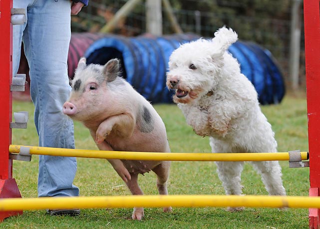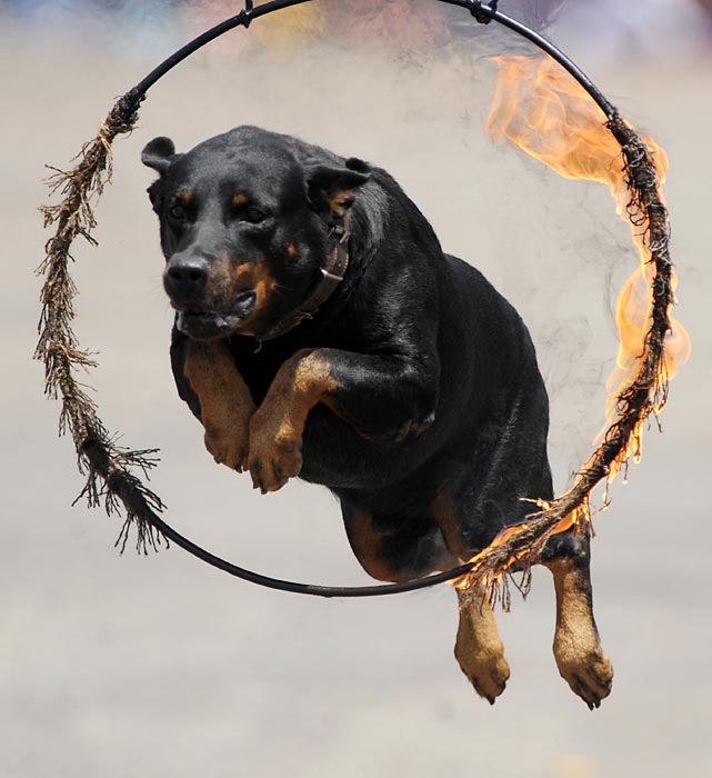 狗狗不仅是人类的好朋友,很多时候更是运动健将。我们就选取一些经典的狗狗运动图片分享给大家。在图片中,钻火圈,叼飞盘是最普通的技能,更有擅长跨栏、跳水、短跑、跳远的狗狗不断出现。