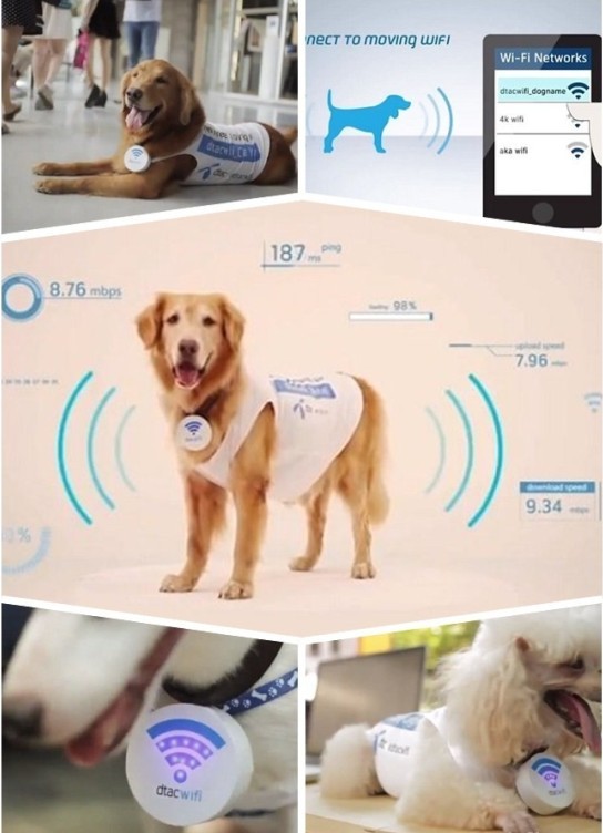 6月3日消息,泰国移动通信公司Dtac为了推广“移动WiFi”(Moving WiFi)服务,将宠物变成了其WiFi热点。