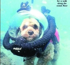 为了让宠物狗也能享受海底潜水的乐趣,艾尔巴经过潜心研究,终于设计出了一种7公斤重的宠物狗潜水服,它配有防水头罩和“压舱物”,能使宠物狗在水底像鱼儿一样畅游。据艾尔巴称,这套宠物狗潜水服的造价大约高达4万美元。