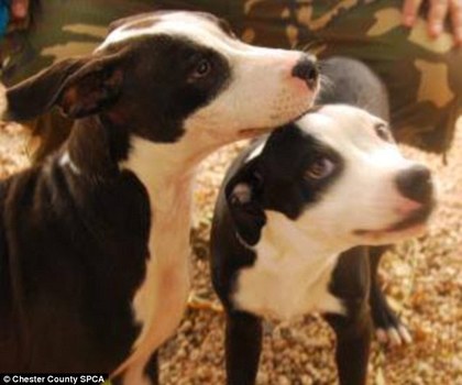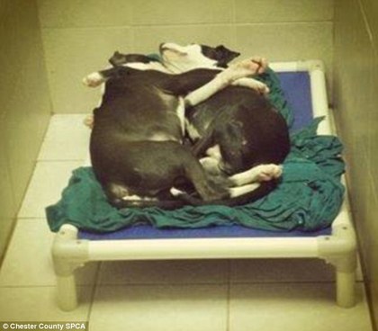美国费城动保中心,在街上发现这对6个月大的好兄弟,其中一只狗失明,另一只自动担任起导盲犬的工作,到哪都会随时注意对方持续引领牠,让动保人员相当惊讶,动保人员拍下这对好兄弟相拥入眠的照片,充分展现出牠们的情谊。
