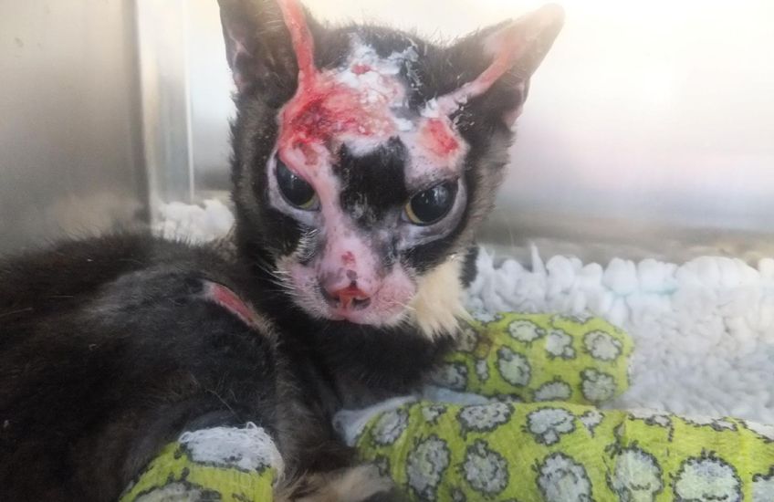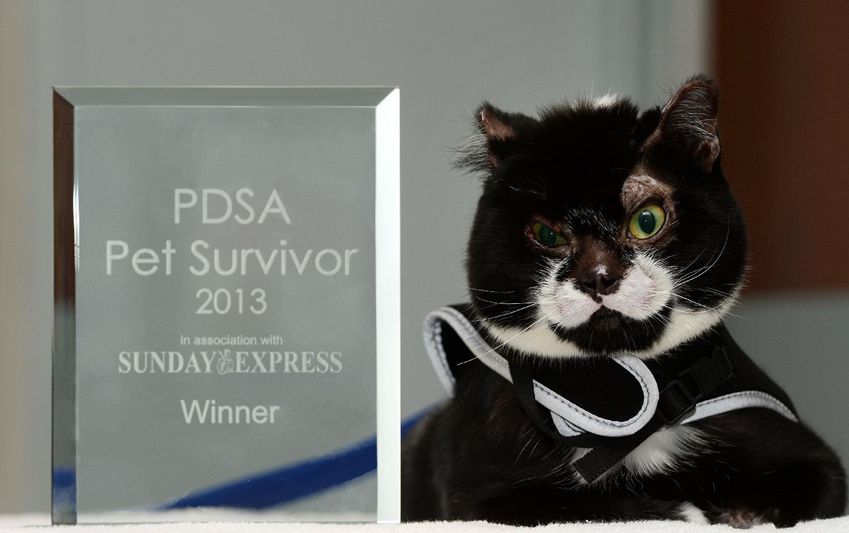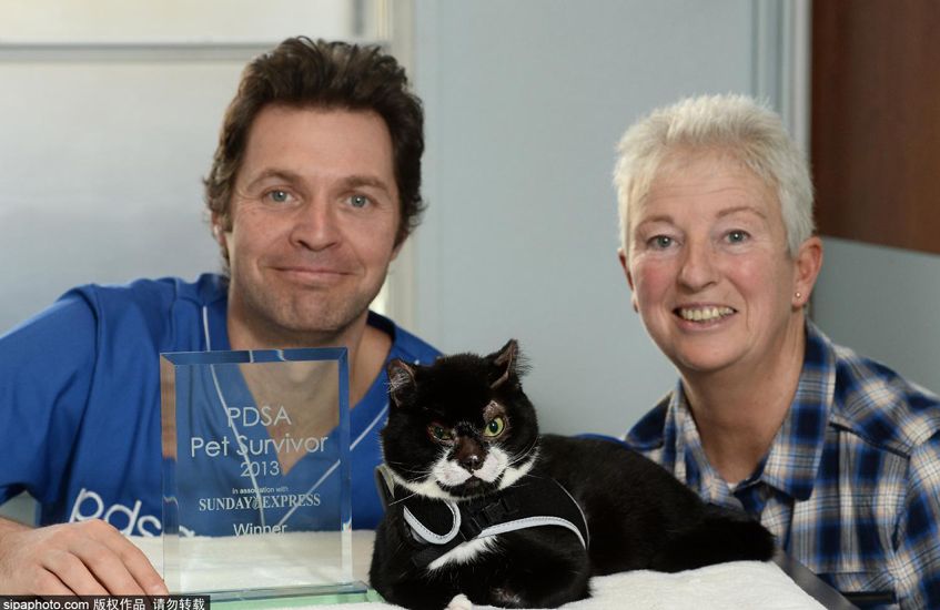 当地时间2013年12月23日,英国克罗伊登镇,兽医慈善组织PDSA评选年度宠物,一只曾经在火灾中被烧伤的猫咪获得了这项年度大奖。这只猫名叫Robbie,在一次大火中被严重烧伤,但它坚强的活了下来,并得到了慈善组织PDSA的救助。而这个奖项也是为了表彰它顽强的毅力。兽医慈善组织PDSA的资深兽医说,他们每年都会看到很多在灾害和事故中坚强存活下来的动物,包括被车撞伤的,被蛇咬伤的等,而这些故事也正是让他们做好一名兽医的动力。