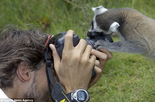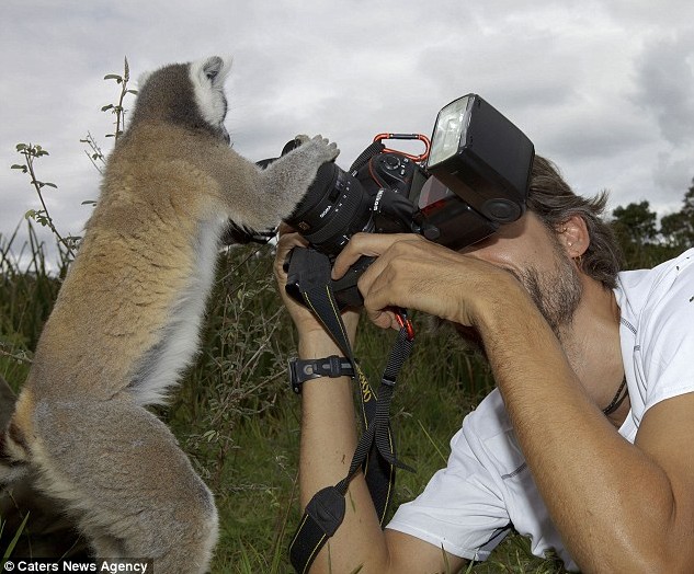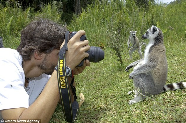 西蒙斯在非洲的一处自然保护区花了一整天时间拍摄了这组照片。他说:“由于没有天敌,马达加斯加的狐猴都非常自信。此外,它们对偶尔喂食来取乐的游客也已习以为常了。” 西蒙斯还说:“我花了整整一天时间拍摄这些狐猴,它们天生好奇,有好几次它们靠近我,握着照相机,看着镜头想知道我到底拿着这个东西在干什么,实在是太有趣了。”