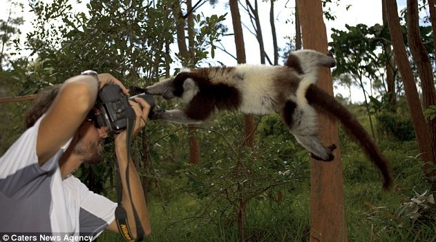 近来越来越多的世界名人将他们与灵长类动物的照片上传到网上,这些丛林假日照无疑为他们赢得了大量粉丝。如今,马达加斯加的狐猴也开始成为拍照的新宠。由于没有掠食者,马达加斯加的狐猴可以自由自在地在这里漫步,它们也不惧怕人类,甚至常常好奇地走近摄像头,想要一探究竟。